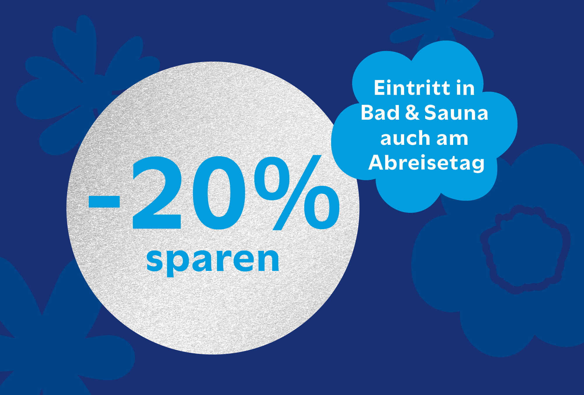 Sparen Sie jeden 20. des Monats -20% beim Eintritt und genießen Sie jeden 20. Saunaaufguss als besonderes Highlight.